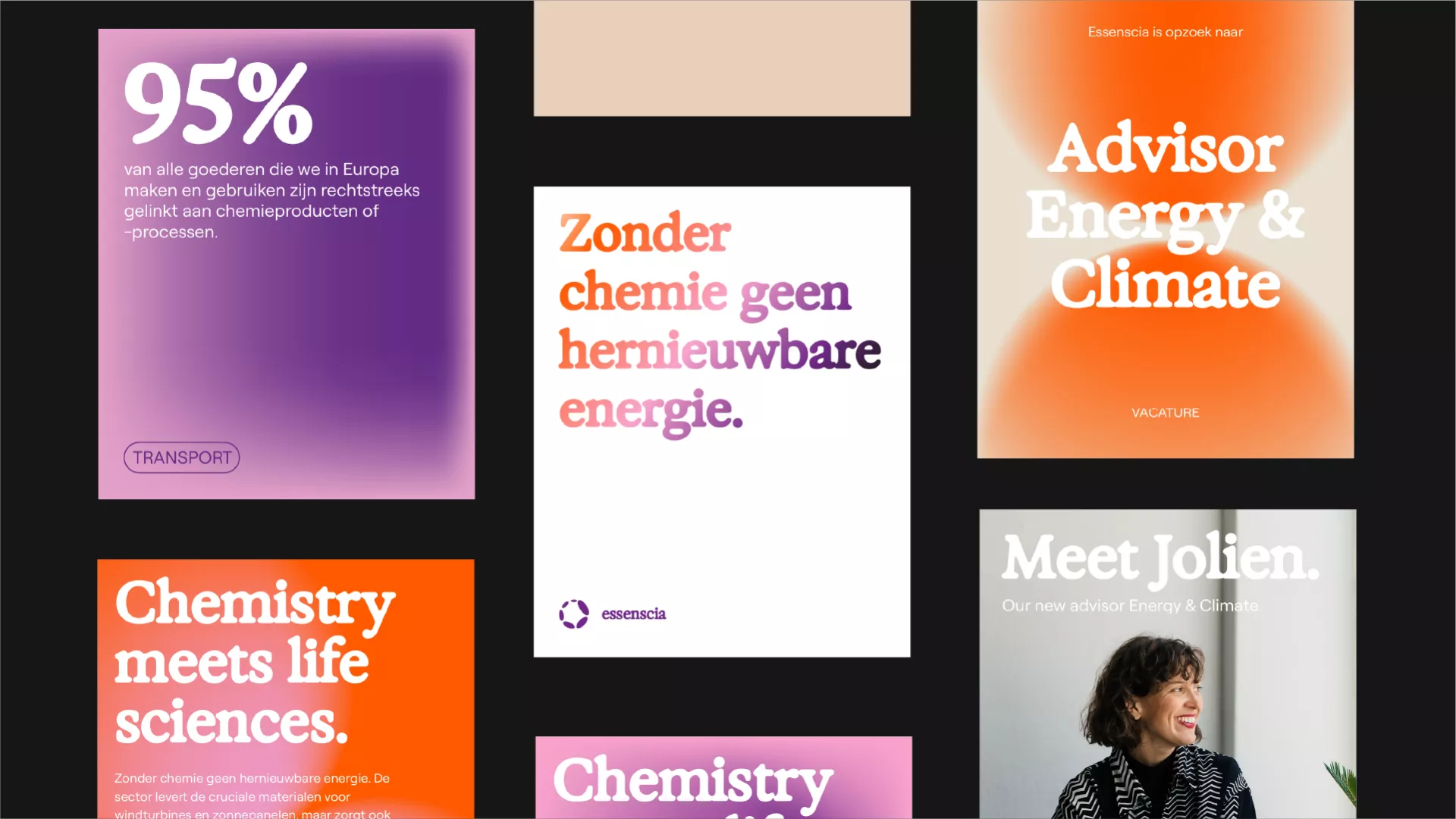 The bold, variable typeface is a deliberate choice. It speaks to connectivity while introducing a refined softness. This balance between strength and fluidity mirrors the industry itself, where precision meets innovation. With a dynamic logo, a distinctive visual language, and a stronger digital presence, Essenscia steps confidently into the future without losing the essence of its past.