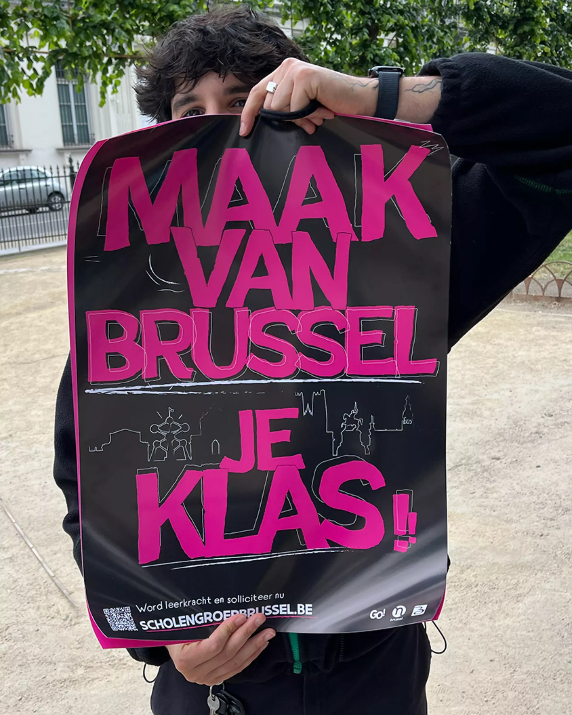 That's right, we used an actual sheep (the lovely lady Brownie) for a campaign for GO! Scholengroep Brussels. Why? Well, with a huge shortage of teachers in Brussels, we had to find a way to get the attention from passionate (future) teachers. We wanted to show them what teaching in the city looks and feels like, that it might be different from anywhere else, but there's power in breaking away from the herd. Our video with Brownie and a unique collage-animation was only one part of the campaign, we also made a video-series with real teachers all over the city, showing that a classroom reaches way beyond four walls. To connect all the dots, we designed a style with our slogan MAKE BRUSSELS YOUR CLASSROOM, that was used across all video's, posters and ad visuals. Just watch, you'll see our flyer pop up somewhere in every video and you might still spot a poster in the city somewhere. WWe reached approximately 237.000 unique accounts on META, over 146.000 views on Youtube and almost 18.000 clicks in our allround digital campaign with detailed targeting to the right audience. It's the perfect example of where online and offline communication make a strong case together: no sheepish campaigns here.